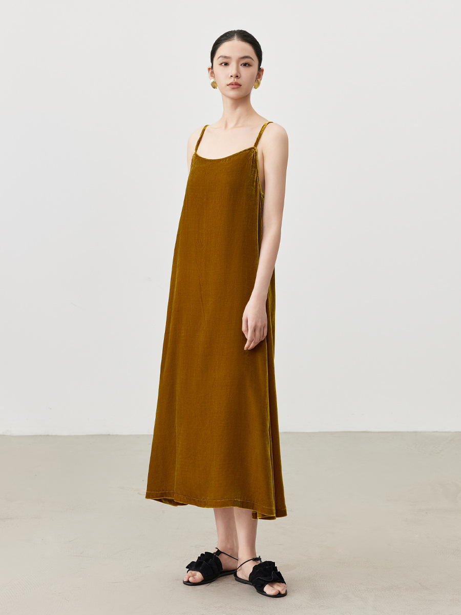 Mulberry silk dress, women's summer silk velvet dress, suspender skirt, simple long skirt design, slimming dress