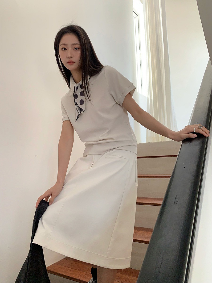 NEIHE 2025MIU Series Polo Collar Retro Scarf Short Sleeve T-shirt
